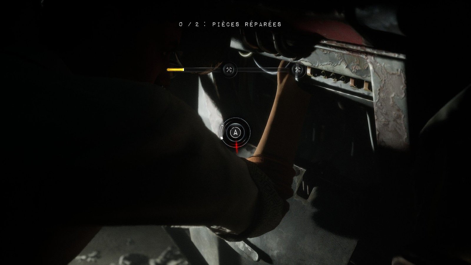 C’est ainsi à travers trois époques que vous devrez naviguer afin d’en apprendre un peu plus sur les tenants et les aboutissants de cette histoire macabre derrière laquelle l’ombre de Frank Stone plane à chaque instant. Mais au-delà du récit du jeu, c’est avant tout l’univers de Dead by Daylight qui est mis à l’honneur. La présence de l’Entité, ce mal incarné intemporel qui se nourrit des émotions fortes de ses victimes, à travers plusieurs mondes, est bel et bien là, mais aussi de nombreuses autres références. Il n’est pas indispensable de les avoir, mais les fans se délecteront de tous ces easter eggs semés un peu partout, à l’image du masque de lapin de la Chasseuse qui traîne sur une étagère, d’un tableau tiré du jeu de Behaviour, ou encore la présence de palettes et de générateurs à réparer. On retrouve d’ailleurs ici la même interface consistant à presser le bouton au bon moment, lorsque le curseur passe dans la zone de succès, obligeant à réagir vite, mais pas trop non plus. Le matériau de base est respecté et l’hommage rendu évident. De ce point de vue, c’est une franche réussite.
