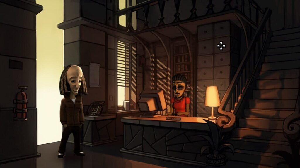 Ce dernier aurait été en possession du fameux livre, et c’est à ce moment là que les ennuis commencent pour nos deux héros et leur nouvelle amie. Ce premier chapitre trop court avec ses deux petites heures en moyenne de durée de vie, n’était l’occasion que de présenter au joueur un monde original inspiré par l’art africain et Grim Fandango. Les visages des personnages sont en effet basés sur des masques tribaux africains, tandis que les dialogues ont été fortement influencés par le dialecte rasta. Et pour son côté »grimesque », il suffit d’y jouer pour s’en rendre compte.