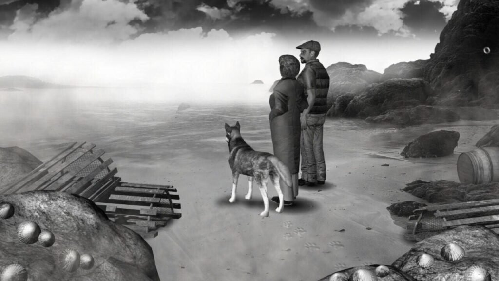 En effet le jeu met en scène des personnages en trois dimensions sur un décor bidimensionnel qui sont en fait des photos sur lesquelles le personnage « glisse » et hormis certains éléments de décors en 3D se détachant du lot, l’aspect à l’écran semble tout de même étrange . L’animation médiocre des personnages jure avec la précision et la netteté des paysages, vous contrôlerez donc un protagoniste sur coussin d’air en moonwalk quasi permanent et ce même en marche avant. La direction artistique du jeu est intéressante, l’ensemble de l’histoire se passera dans un cadre monochrome, seuls certains éléments seront en couleur ce qui rend l’ambiance globale intemporelle ; j’ai même eu l’impression d’évoluer dans une dimension parallèle à certaines occasions.