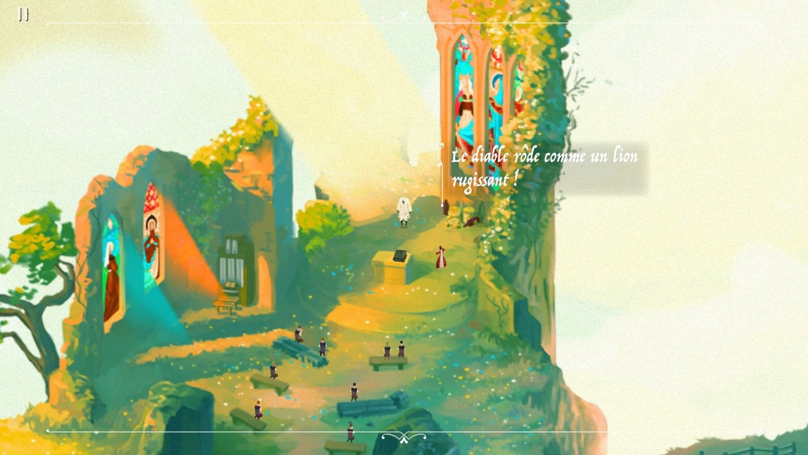 C’est là le premier tour de force de la production Arte, qui déploie une direction artistique somptueuse et tout en délicatesse, venant directement servir la narration, en dépeignant notamment les émotions qui gagnent notre créature. On admire alors le monde se noyer sous un flot de couleurs chamarrées lors des moments de joie, puis se ternir jusqu’à en devenir effrayant lorsque l’angoisse envahit notre avatar. Une symbolique sans équivoque, mais dont la technique irréprochable vient constamment assouvir notre goût pour le beau, par l’esquisse d’aquarelles bucoliques dont les formidables panoramas grouillent de détails. Nos esgourdes ne seront pas en reste, puisqu’une superbe bande-son accompagne chacun de nos pas, alternant entre des thèmes légers, dissonants, ou mélancoliques, qui se composent selon les humeurs de notre protagoniste.