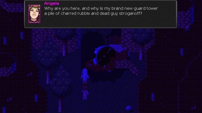 Le jeu est d’autant moins tolérant que, voué à rester dans une niche, il ne sera guère fréquenté que par ses fans qui seront forcément tous bien plus forts que tout débutant (une bonne centaine de joueurs chaque soir sur le serveur Steam). Un matchmaking existe mais il n’est encore qu’embryonnaire et ne vous donnera pas de joueur du même niveau. L’autre solution est bien évidemment de jouer en local contre un ami bienveillant, sur Steam uniquement : les portages console dépendront du succès. Il y a également un mode Practice et surtout un mode Histoire dont seul le premier chapitre, consacré à Arizona, est pour l’instant disponible. Ces chapitres racontent la pérégrination de chacun des personnages et alternent entre les arènes de combat classiques et une vue de dessus en mode pixel art pour se balader dans le monde de Foerune. Avec deux-trois features style RPG pour meubler, ce mode pourrait constituer une alternative très intéressante s’il n’était aussi mal équilibré. Malgré les cinq niveaux de difficulté disponibles, même le plus aisé est extrêmement coriace (pour moi) et passe par des phases d’apprentissage de sauts – très compliqués à exécuter au pad – qu’il ne demande pas de restituer par la suite.