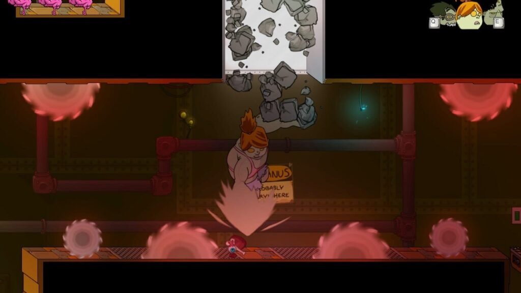 Un laboratoire, des expériences bizarres et… une fuite, celle de trois zombies ( sous une seule forme ) qui vont coopérer dans des niveaux de plateformes ou chacune de leurs compétences sera utile à un moment ou à un autre. D’une pression sur la bonne gâchette, vous passez alors du simple zombie bipède qui peut sauter et frapper, ainsi qu’actionner quelques boutons, à un zombie bien plus crétin qui rampe et peut donc se déplacer beaucoup plus vite, sauter plus loin et passer dans les endroits les plus étroits. Enfin, un énorme zombie féminin vous servira de Hulk pour tout détruire sur votre passage et soulever les objets les plus contondants. La découverte est très réussie. Les niveaux du tutoriel sont plaisants et découvrir chacun des zombies jouable est vraiment un bon moment. Puis viennent les « vrais » niveaux et on continue l’exploration avec plaisir mais… quelque chose se casse rapidement. La découverte n’est plus est les défauts crèvent malheureusement l’écran . À commencer par cet insupportable hitboxUne hitbox (littéralement "boîte de collision") est une zone invisible associée à un objet ou un personnage dans un jeu vidéo, qui sert à détecter les collisions ou les impacts. qui vous fait mourir pour des raisons improbables : sans aucune pitié, les collisions sont mêlées à une vitesse de déplacement très déséquilibré entre les personnages. Passer de l’un à l’autre relève de la pure chance en cas de grand moment de plateforme au pixel prêt et surtout, la seconde transformation, celle nécessitant de ramper et de se déplacer à grande vitesse, est totalement mal gérée. Du coup, on s’énerve.