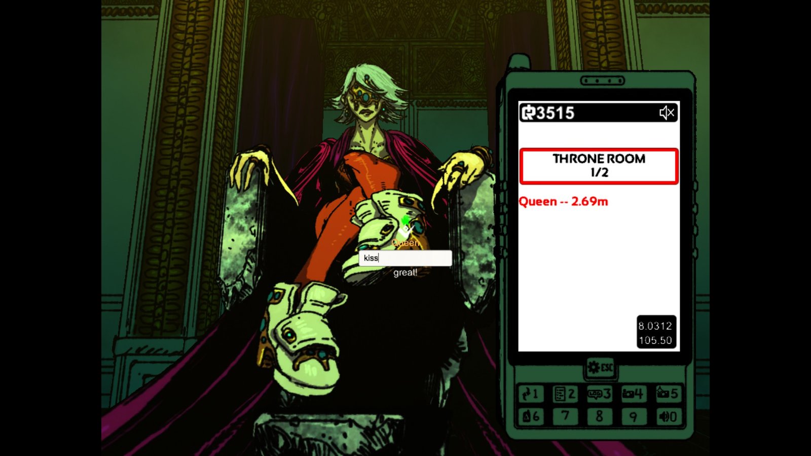 Si l’idée originelle demeure intéressante, sa mise en application est décevante et frustrante. On attendait de la liberté dans l’interaction, puisqu’elle s’appuie sur l’imagination du joueur ; il n’en est rien. Les éléments avec lesquels il est possible d’interagir sont peu nombreux, et les interactions possibles plus que limitées : il n’y a qu’une et une seule façon de les utiliser, et le jeu consiste donc à trouver le mot qui correspond à ce qu’attend le jeu . Pire, entrer un mot inadéquat et le jeu se fendra simplement d’un laconique « NOPE » pour signifier qu’il faut trouver autre chose. Tant pis pour l’immersion. Pas de description de l’échec, pas de mise en scène, comme l’aurait sans doute fait un point’n click ; pas non plus d’indice pour permettre au joueur de comprendre pourquoi le mot saisi, qui semblait faire l’affaire, ne la fait pas. C’est que parfois le système se veut très précis et il refusera « pour » ( « verser » ) là où il attend « drip » ( « verser goutte à goutte » ). De quoi pester un peu que lorsque le bon mot ne nous vient pas de suite à l’esprit, ou lorsque qu’on ne comprend pas bien ce qu’il faut faire.