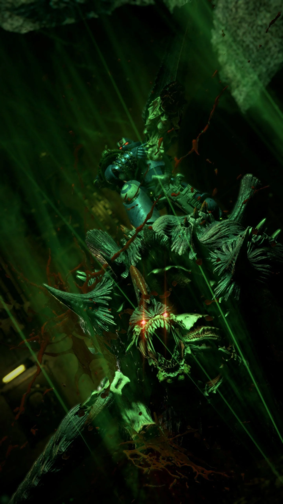 On est en automne 2004, alors que je m’apprêtais à faire ma partie Halo 2 hebdomadaire en coop, l’ami chez qui je me rends est en train de jouer à Dawn of War. Premier contact pour moi avec Warhammer après cette incroyable cinématique, je me suis longtemps dit : « En vrai, un jeu d’action de fou Warhammer 40K, pourquoi ce n’est pas encore sorti ? ». La vérité, c’est qu’on avait déjà eu Fire Warrior en 2003, et c’est l’inverse d’un jeu d’action de fou. Heureusement, Relic Entertainment a sorti Space Marine en 2011 et Saber Interactive prend le relais en cette fin d’année 2024 avec sa suite. Après avoir fait joujou avec des zombies et des camions tout terrain, les voilà déterminés à vous faire tuer du xénomorphe en pagaille.