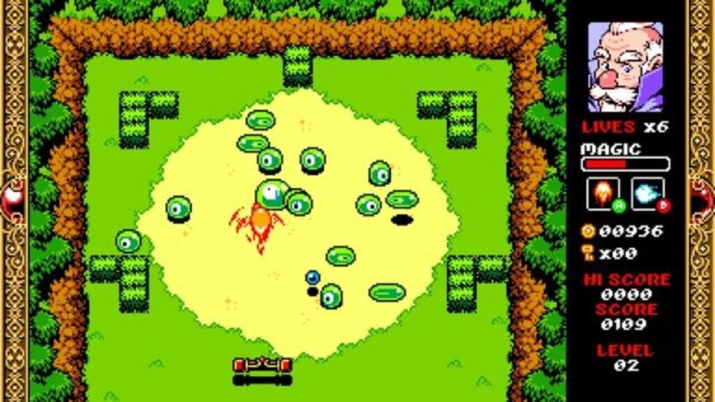 La ville n’est qu’un point de repère pour chaque niveau, découpé en 12 zones . Ces niveaux se jouent comme dans un casse-brique traditionnel : vous y voyez des blocs à casser, des pierres, des buissons et des ennemis à toucher avec votre balle pour les éliminer. En début de partie, votre magicien se transforme alors en « barre » que vous contrôlez de gauche à droite. Des pouvoirs sont aussi au rendez-vous : une boule de feu (pour détruire l’obstacle droit devant elle) et un « souffle » permettant de pousser la balle vers une direction opposée (ou au contraire pour accélérer son avancée) . Ces pouvoirs vident votre jauge de mana , que vous pouvez revigorer en attrapant les fioles bleues qui tombent de l’écran aléatoirement, lorsque certains blocs/ennemis sont détruits.