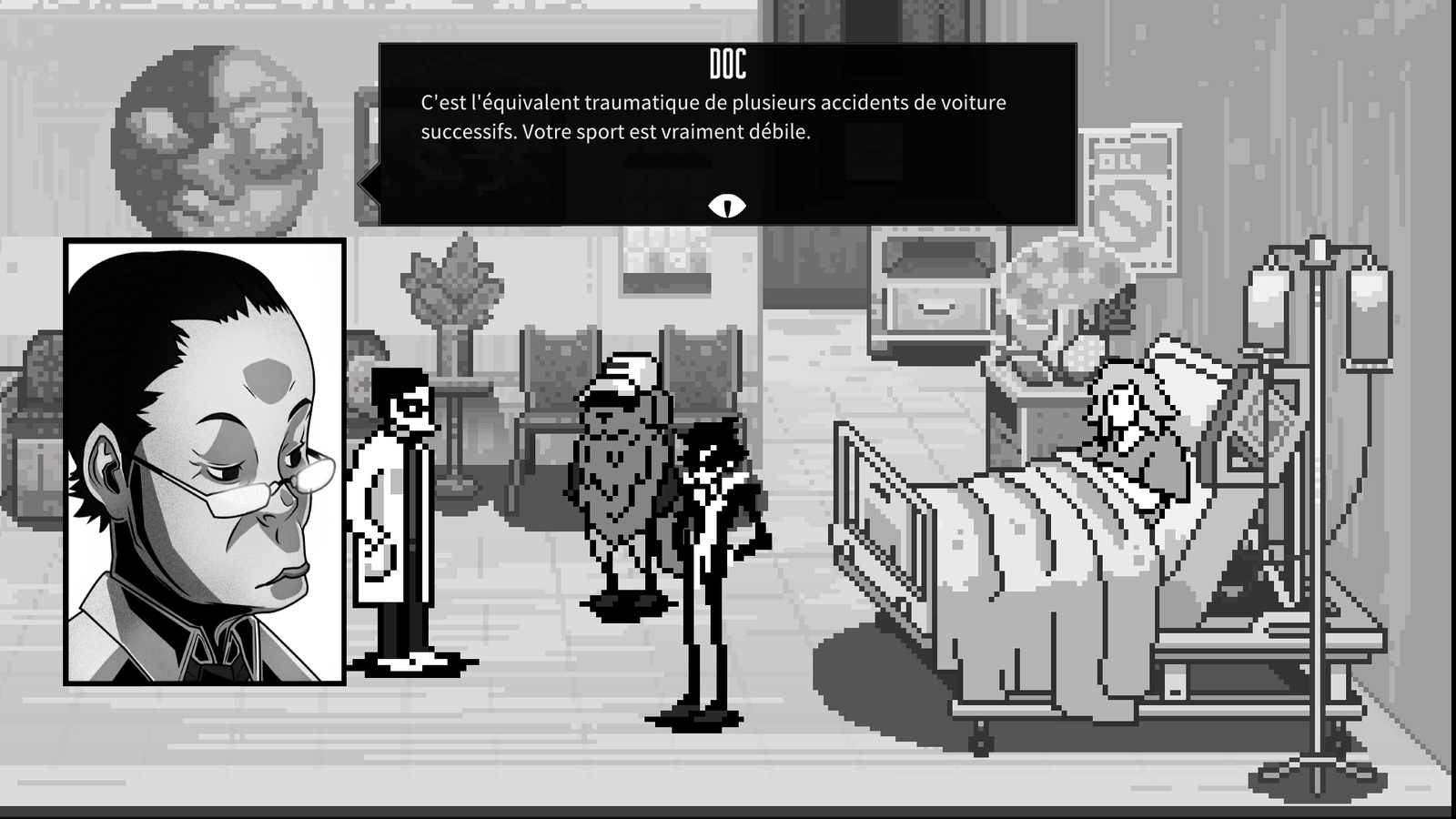 Wolfstride c’est un des plus beaux jeux en noir et blanc, c’est une ode aux sports du futur et aux histoires de galères qu’il y a derrière ces loisirs aussi jouissifs que futiles et toxiques. C’est un jeu tactique simple, profond et addictif. C’est un jeu drôle, touchant, aux dialogues bien écrits et au doublage qui force le respect. C’est un jeu qui veut parfois en faire trop pour son propre bien, qui se perd un peu, mais c’est sans doute parce qu’il est plein d’amour pour les robots et pour les marginaux.