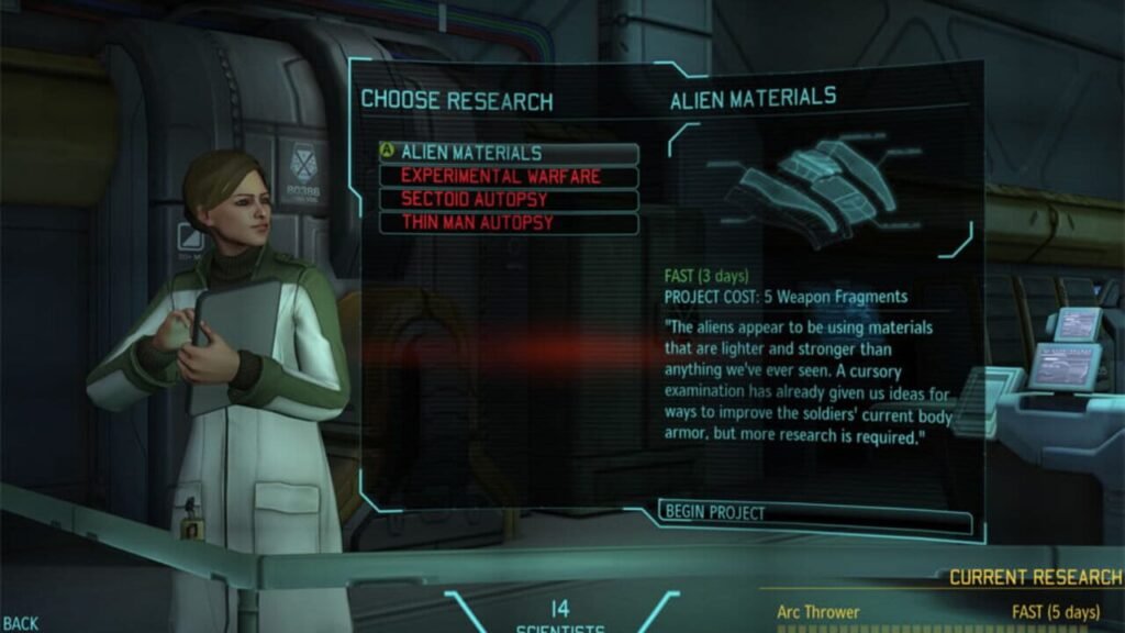 Les pays du monde entier se mettent alors à financer un projet XCOM, ou l’élite militaire et scientifique est réunie pour faire face à cette armada à la puissance colossale. En tant que joueur, nous sommes le chef de cette unité XCOM et il faudra alors tout gérer : de la base aux recherches, de l’équipement aux missions sur le terrain. De la gestion à l’ancienne ! On commence avec cette base gigantesque à gérer, en tant que chef des opérations. Il faut d’abord recruter des soldats, mais aussi tenter de leur proposer un équipement de meilleure qualité. C’est pour cela que deux poles bien distincts sont disponibles : l’ingénierie et la science. Qu’ils soit scientifiques ou ingénieurs, les civils qui travailleront pour vous seront une ressource à part entière qu’il va falloir apprendre à gérer et à collecter en tant que récompenses au fil des missions réussies. Plus vous avez d’employés, plus vous aurez de possibilités de recherche en technologie et de bâtiments à créer.
