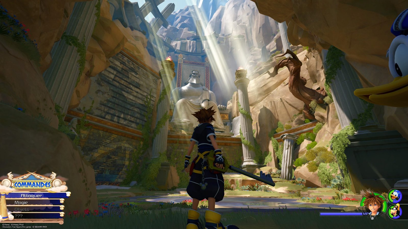 Des attractions de Disneyworld aux attaques de groupe (une pour chaque monde en fonction des alliés qui nous suivent), le jeu fera tout pour vous simplifier la vie et les combats. Dans certains mondes, vous aurez même la chance d’activer des objets du décors qui viendront vous aider. Bref, le gameplayOu « jouabilité » en français, fait référence à la façon dont le joueur interagit avec un jeu vidéo. est très simple à prendre en main et le jeu est assez facile à traverser. Mais coté spectacle, on en a clairement pour son argent.