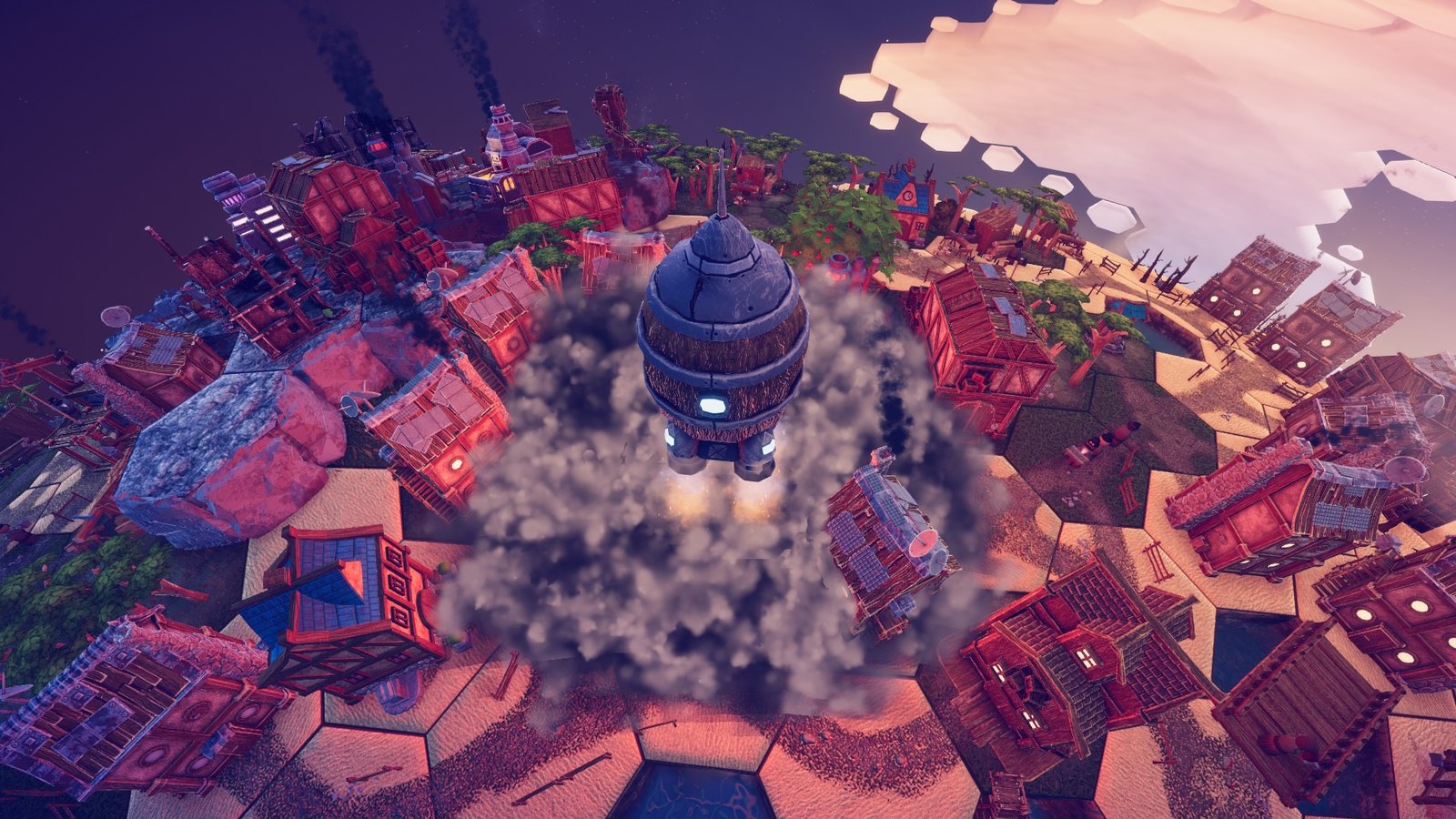 Côté expansion, comme dit plus haut, on est proche de ce que fait Anno mais en beaucoup plus simplifié. Il faudra empiler les chaines de production afin de créer des ressources avancées, et aller en piocher sur d’autres continents ou planètes. Le contrat est plutôt rempli jusque là, on se prend alors facilement au jeu malgré quelques incohérences (pourquoi je dois démanteler des vieilles carrières de pierre pour avoir de la pierre alors que je pourrais juste creuser directement dans la pierre ?) et l’absence de réelle sensation de progression, vu qu’on passe du navire en bois à la fusée sans passer par des cases intermédiaires. Et puis vient le moment où, ça y est, on décolle.