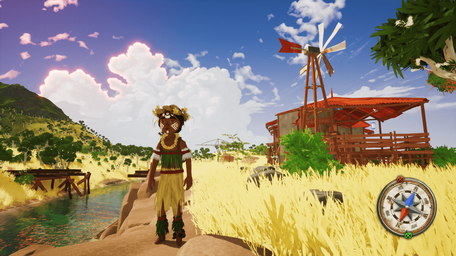 Le récit que nous conte Tchia est clairement touchant et empreint de bons sentiments. Et malgré son allure toute mignonette qui semble le destiner aux enfants, il s’avère bien plus mûr que cela. On suit en tout cas les pérégrinations de la petite Néo-Calédonienne avec plaisir, à travers son voyage initiatique l’amenant à visiter les différents lieux emblématiques de son archipel et à aller à la rencontre de personnages tout aussi marquants. De belles cinématiques viennent appuyer tout cela, toujours dans un style cartoon très coloré du plus bel effet. La direction artistique avec ses graphismes cell-shadés rappelle bien évidemment le titre de Nintendo, surtout lorsque l’on rajoute à cela un planeur pour parcourir de longues distances ou pour amortir les chutes, ainsi que des phases d’escalade aux animations comparables à Breath of the Wild, le tout avec beaucoup d’exploration au cœur de la nature, sans parler du ukulélé en lieu et place de l’ocarina. Sans être du même acabit, Tchia ne se limite pas non plus à cela, c’est avant tout une incitation à la découverte de la Nouvelle-Calédonie.