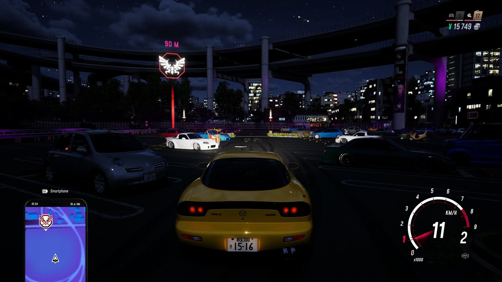 J’attendais beaucoup du jeu tant il me rappelait ce bon vieux NFSU2. J’avais un peu envie de retrouver la simplicité d’une conduite en petite zone, loin des nombreux hectares qu’on a l’habitude de voir dans les open world de bagnoles. Dans un certain sens, JDM arrive un peu à faire ça. La carte n’est pas surchargée, loin de là même, vu qu’à part une icône pour les missions d’histoire (qui ressemble beaucoup trop à un logo de Zelda), des zones de paris, des courses de circuit, et une activité secondaire (on y reviendra), tout est minimaliste dans la proposition. On là pour tuner des bagnoles et faire du drift.